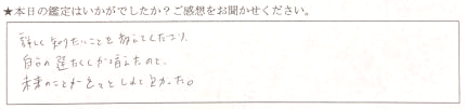 詳しく知りたいことを教えてくださり、自分の選択が増えたので、未来のことが色々と知れて良かった。