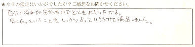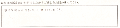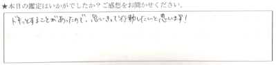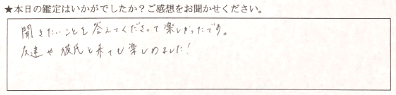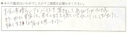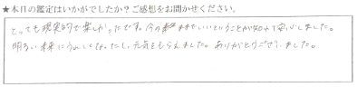 話しやすくて楽しかったです。沢山分かって嬉しかったです。ありがとうございました。